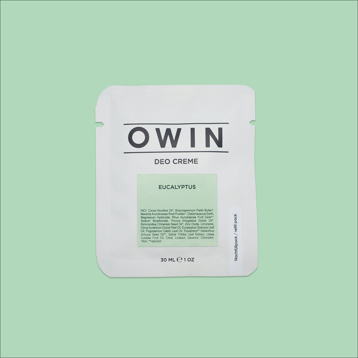 Eucalyptus Deo Creme im praktischen Refill Pack – ideal zum Nachfüllen deiner OWIN-Dose.